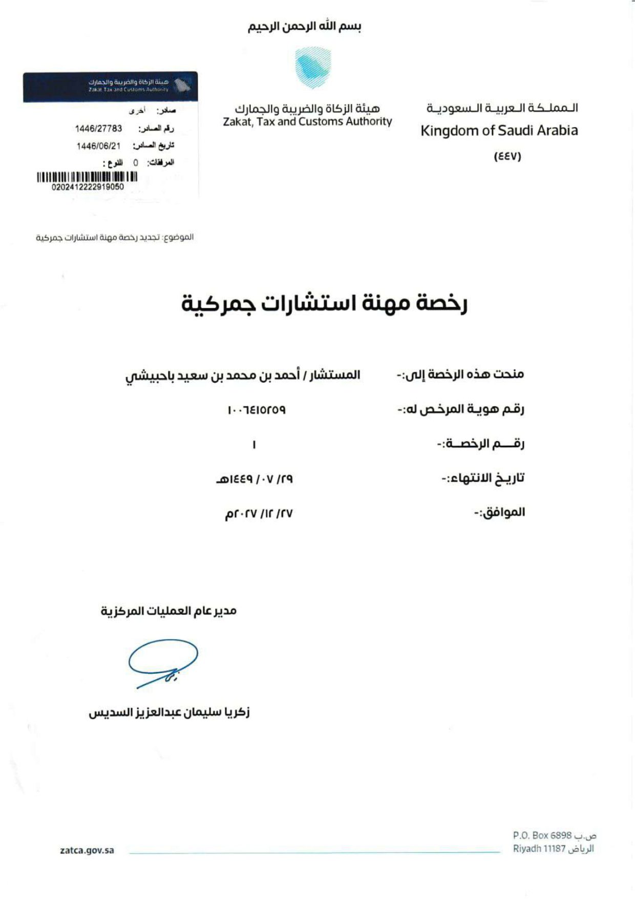 نبذة تعريفية أحمد محمد باحبيشي، أحد القيادات البارزة في قطاع الخدمات الجمركية واللوجستية في المملكة العربية السعودية، يتمتع بخبرة تمتد لأكثر من عقدين في إدارة وتطوير الأعمال في هذا المجال الحيوي. يشغل حاليًا منصب رئيس لجنة المخلصين الجمركيين في الغرفة التجارية بجدة، والمدير العام لشركة مساندة الإمداد الدولية، الشركة الرائدة في تقديم خدمات التخليص الجمركي، والخدمات اللوجستية، والنقل البري. يحمل المستشار باحبيشي عددًا من الاعتمادات المهنية المرموقة، من أبرزها رخصة المستشار الجمركي رقم 1 من هيئة الزكاة والضريبة والجمارك، ورخصة مستشار إداري معتمد من وزارة التجارة، وزمالة المجمع الملكي البريطاني للمحكّمين، بالإضافة إلى اعتماده كمحكّم ووسيط من المركز السعودي للتحكيم التجاري.